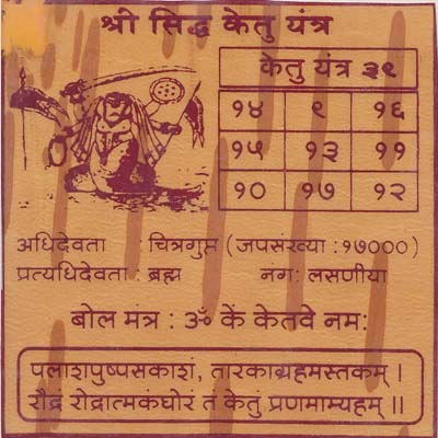 केतु यंत्र से धारक को छाया ग्रह केतु का आशीर्वाद मिलता है।